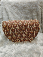 Pink Beaded Crescent Handbag