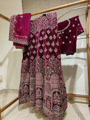Regal Maroon Velvet Bridal Lehenga