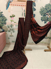 Black & Red Striped Ajrakh Print Saree